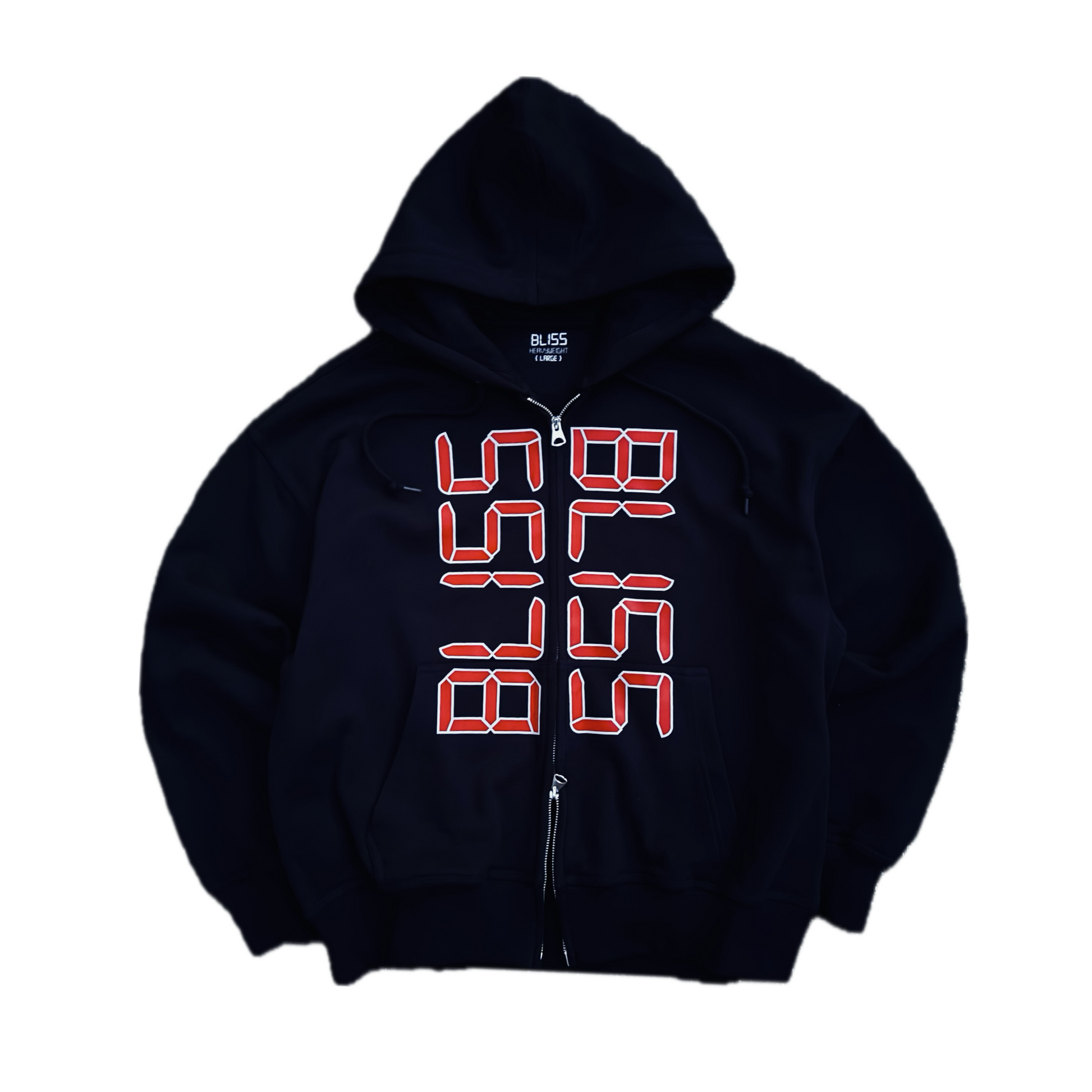 A zip-up hoodie crafted from a 400GSM heavyweight sweatshirt material composed of a cotton blend, featuring a soft brushed interior. it Includes a front double zipper, dropped shoulders, and long sleeves. The design incorporates front pockets and ribbed detailing at the cuffs and hem. This hoodie offers an oversized fit, creating a relaxed and extra-loose silhouette.